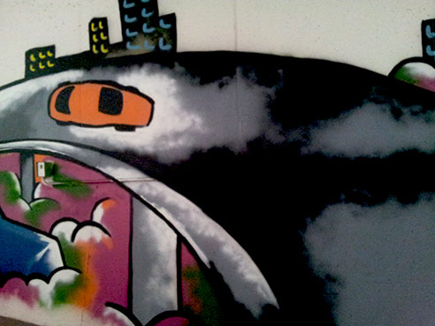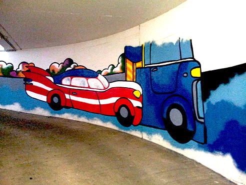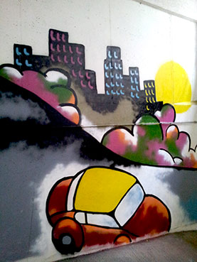 Luca Gruber, 17 Jahre, führte mal wieder einen Graffiti-Auftrag für eine Wiesbadener Immobilienfirma auf den Wänden einer Garageneinfahrt in der Innenstadt von Wiesbaden mit Bravour aus. Wir freuen uns nach wie vor, besonderen Talenten die Chance zu geben, ihre künstlerischen Fähigkeiten öffentlichkeitswirksam auszuleben.